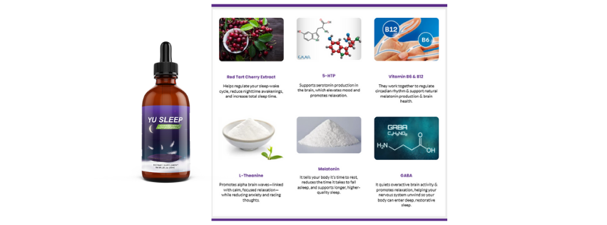 Yu Sleep contains a blend of natural ingredients that offer various health benefits. Some of the key ingredients include: